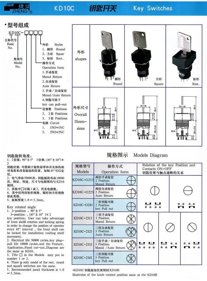 • KD10C鑰匙開關(guān) 產(chǎn)品型號(hào):KD10C